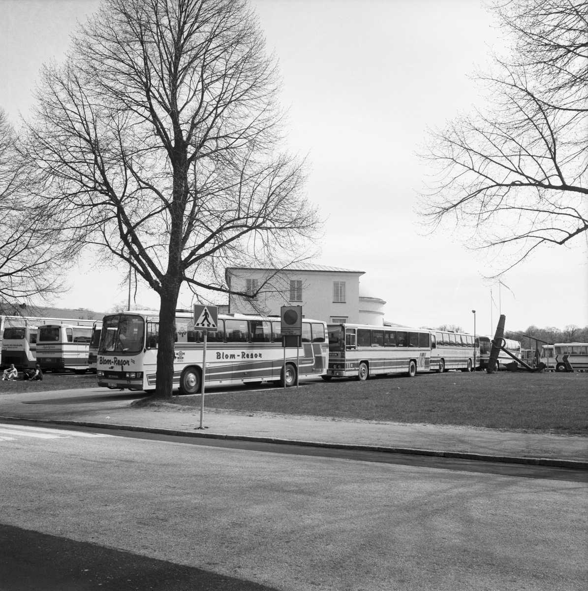 Ankare bredvid Sjöhistoriska museet, samt parkerade bussar.