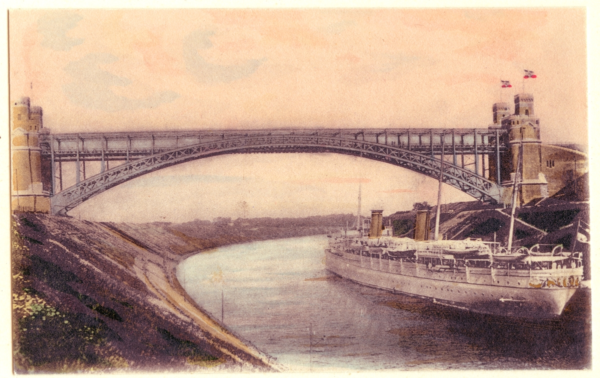 Den tyska kejserliga jakten HOHENZOLLERN passerar högbron i Levensau, Kielkanalen