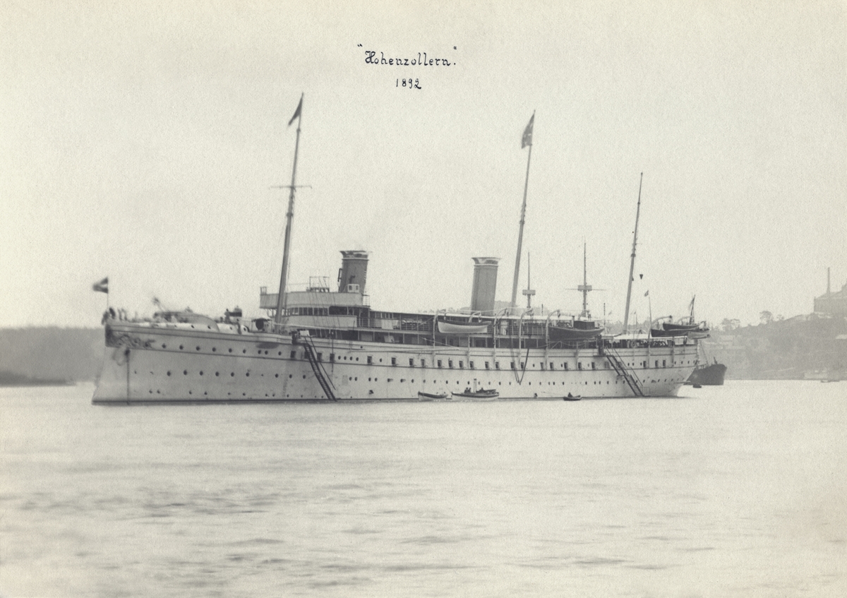 Den tyska kejserliga jakten HOHENZOLLERN fotograferad på Stockholms ström under ett av Wilhelm II:s besök.