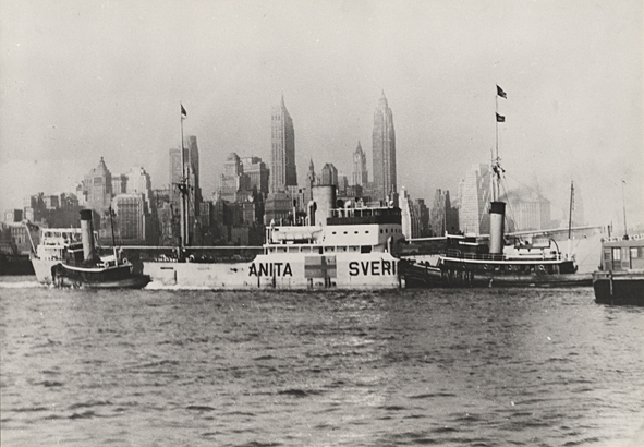 Lastmotorfartyget ANITA av Stockholm, liggande i New York i början av 1940-talet.