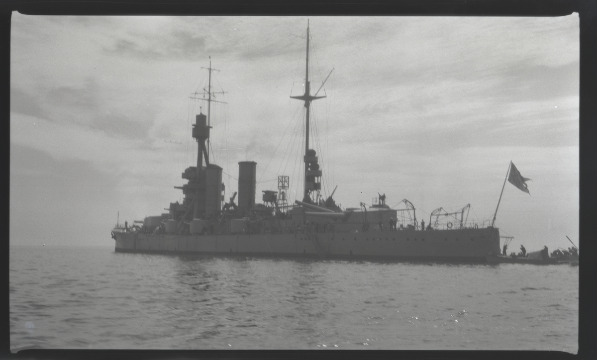 Pansarskeppet SVERIGE och slupar rodda av flottister. Jfr Fo229232C, Fo229234C, Fo22978C och Fo229280C, som uppenbarligen tagits vid samma tillfälle.