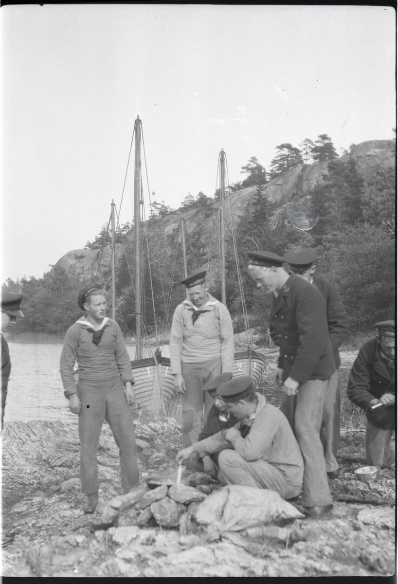 Matroser från pansarskeppet SVERIGE lagar mat i det fria vid