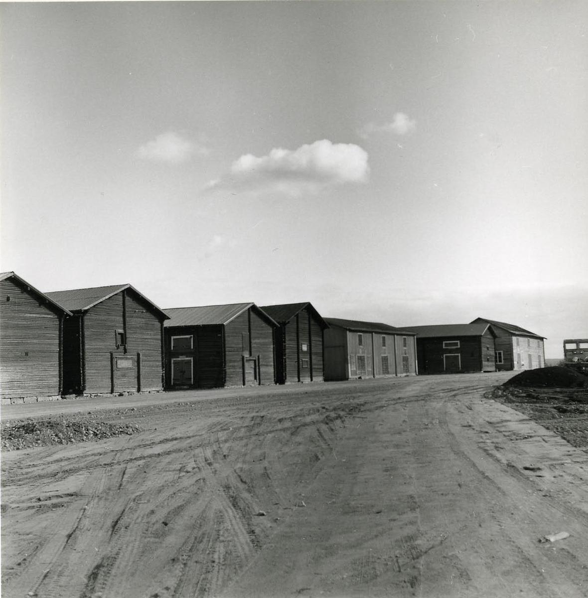 Piteå hamn. Sjömagasin för handelsvaror från 1850-60-talen. Numera sammanförda och uppställda på andra sidan hamnen i Piteå.