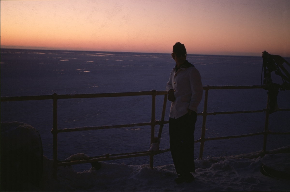 Titel: Solnedgång över ett isbelagt hav, sett från Ymer.