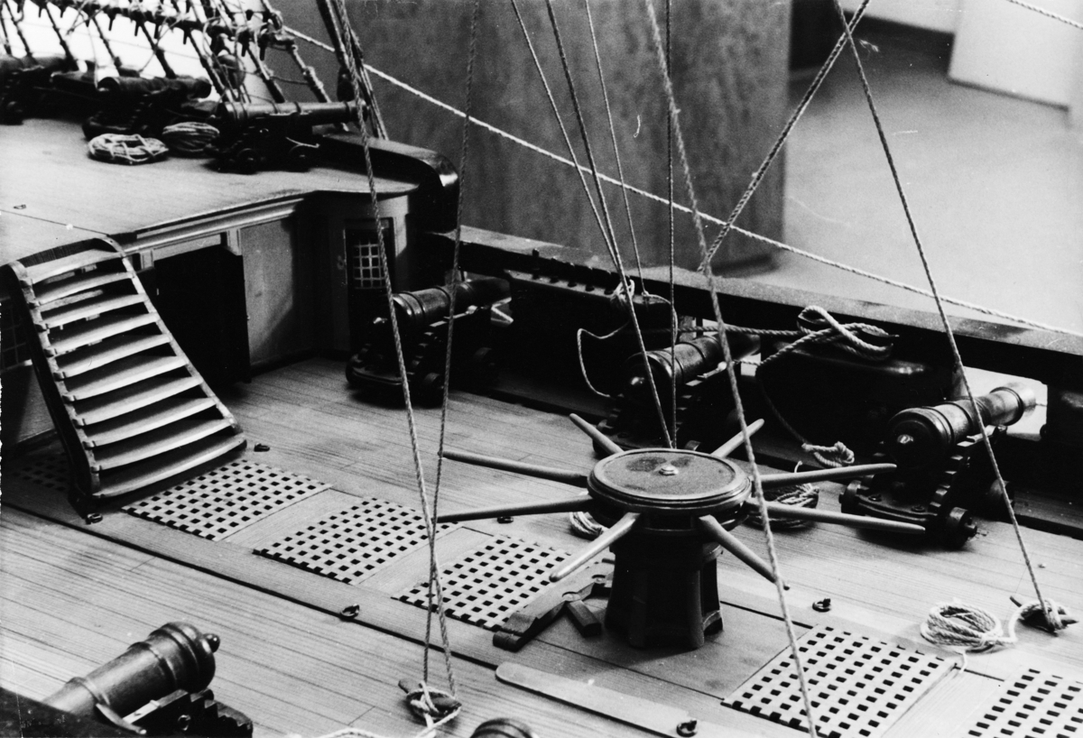 Detalj (däck) av modell av 70-kanoners linjeskeppet ENIGHETEN (1732) alternativt GÖTA LEJON (1746).