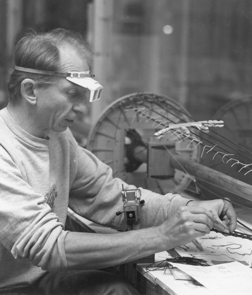 Modellbyggare Göran Forss i arbete med modellen av Vasa i skala 1:10.