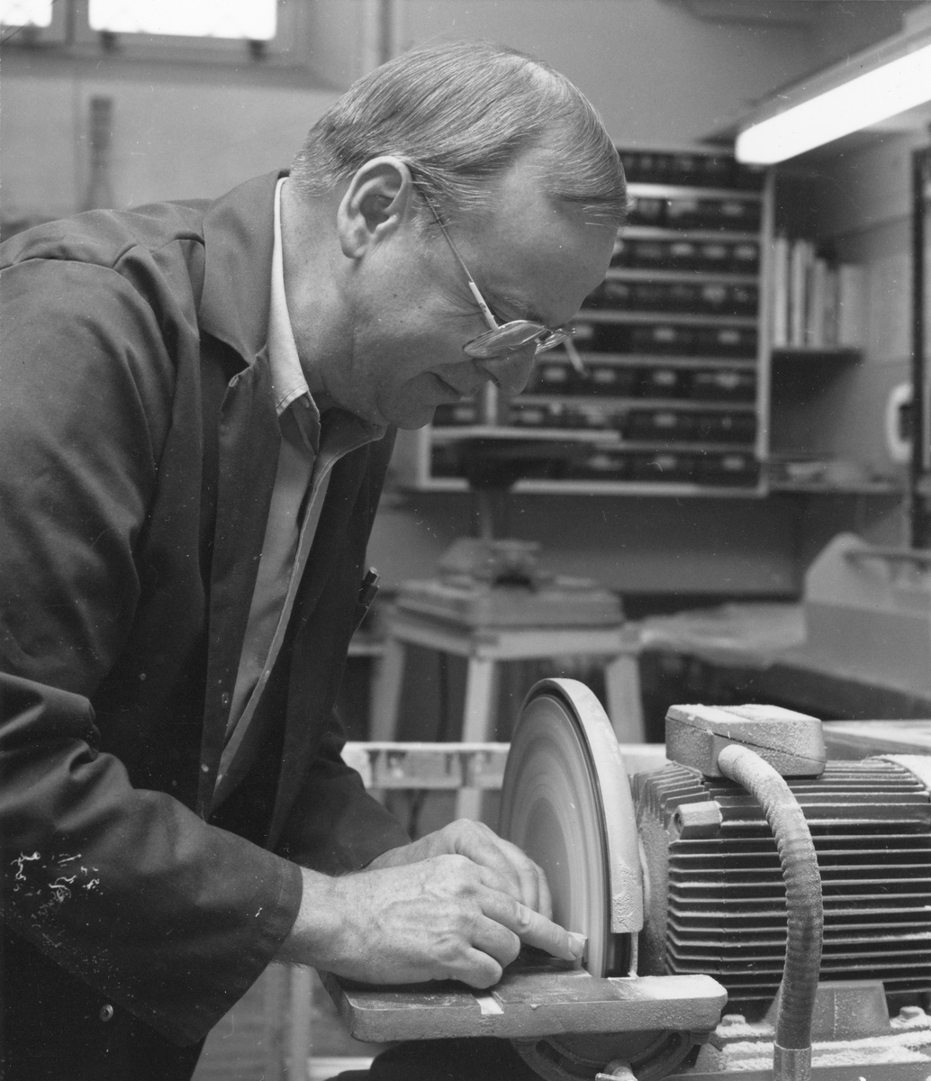 Sjöhistoriska museets modellverkstad. Modellbyggare Lennart Forsling i arbete med en detalj till modellen av Vasa i skala 1:10.