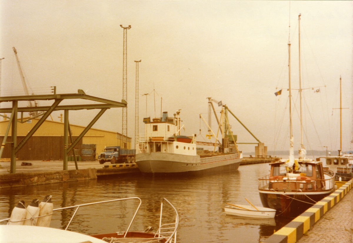 Underås Sandtag III lossar singel vid Tullhuskajen i Västerås 4/9 1979