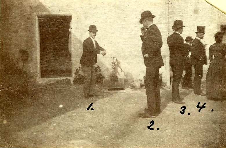 På Karthagos ruiner. 1. U-löjtn. A.H.Gisiko, 2. U-löjtn. H.Ericson, 3. U-löjtn. L.E.Arnelius, 4. Löjtn. C.H.Stenberg,