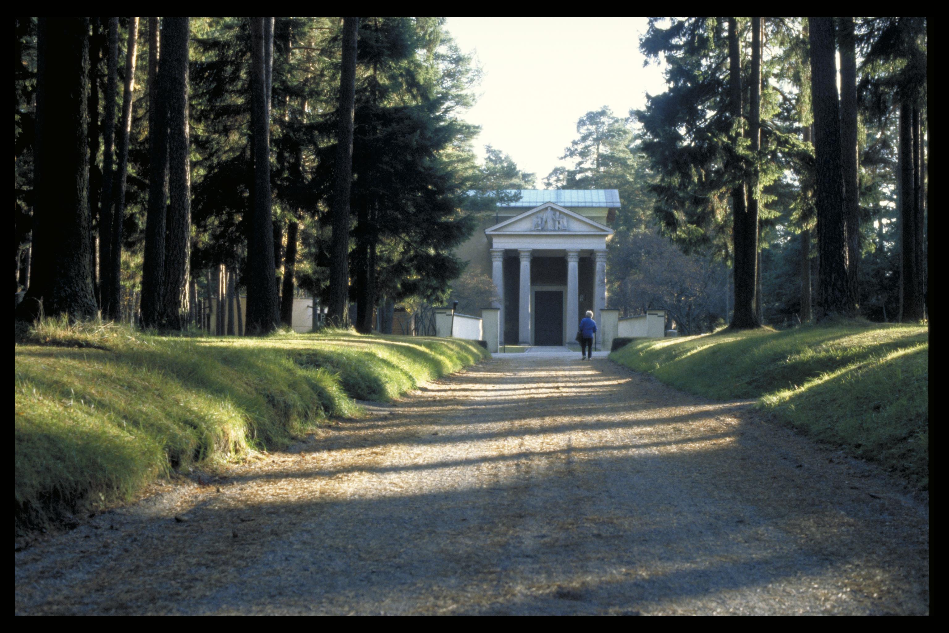 Sju källors väg med Uppståndelsekapellet i bakgrunden.