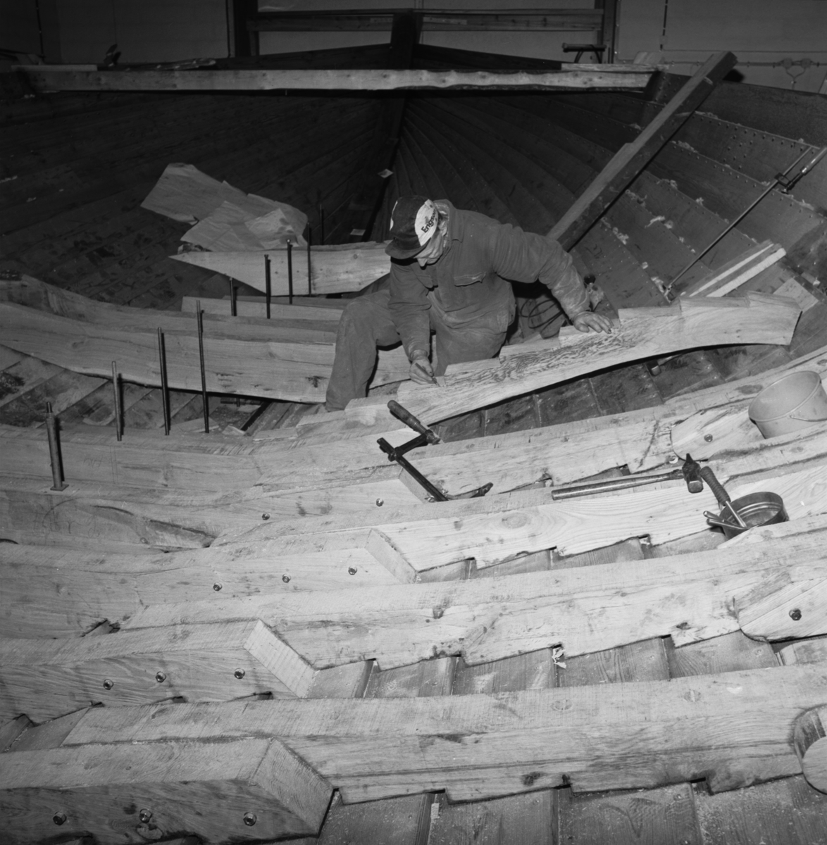 Börje sätter dit spant.