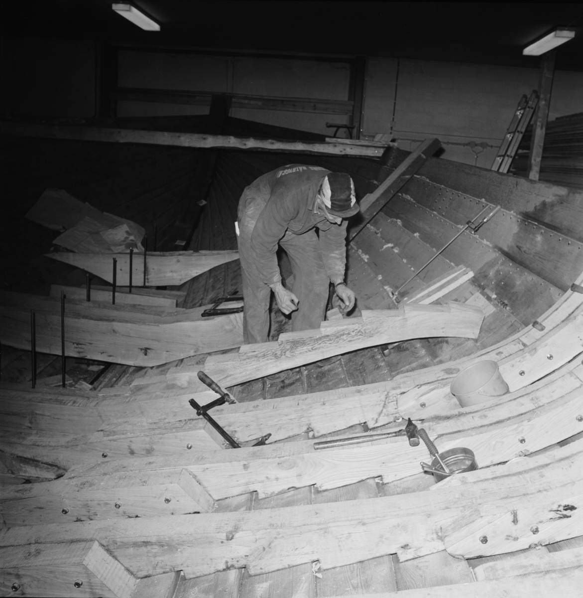 Börje sätter dit spant.