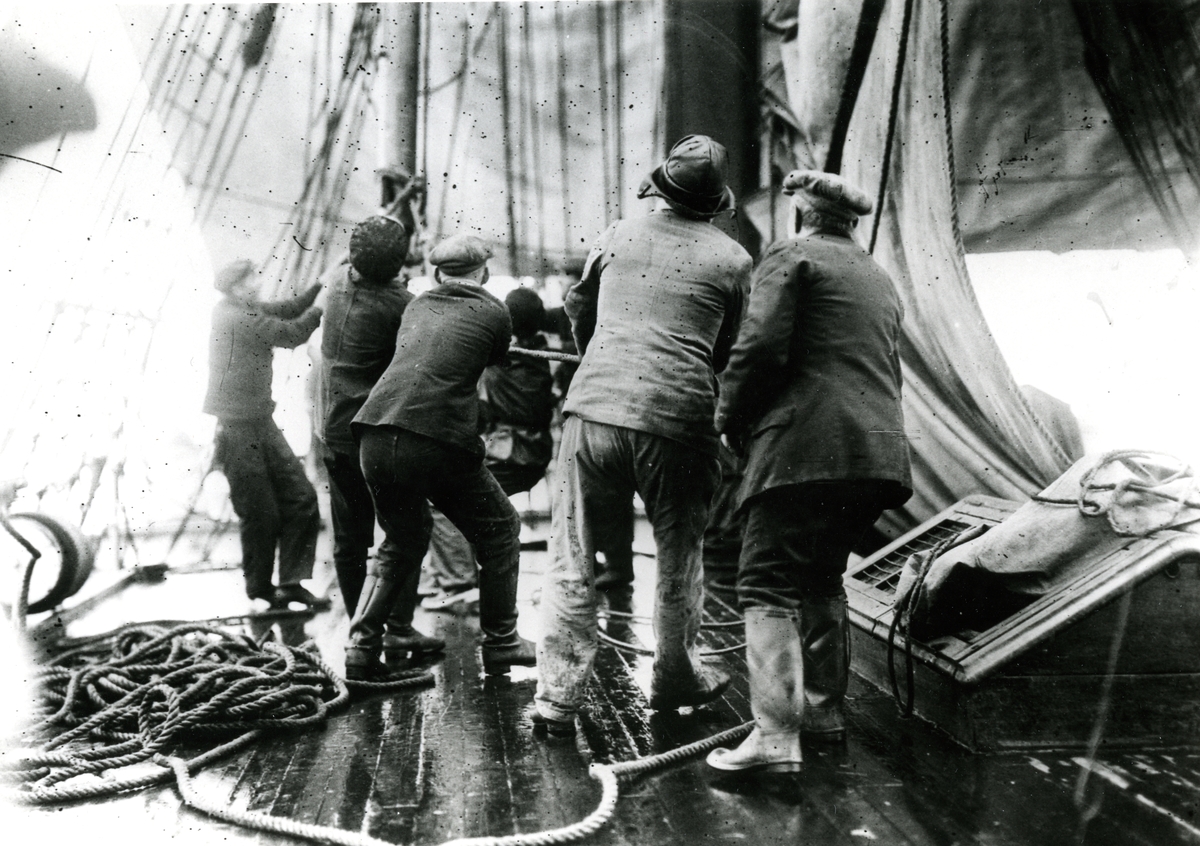 [från fotobeskrivningen:] "Situationsbild från livet ombord."; "Underhåll"