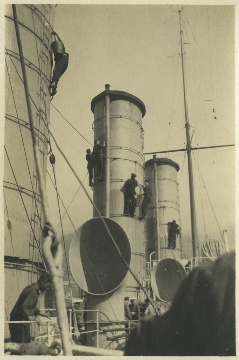 Ombord på pansarkryssaren FYLGIA. Bilden har möjligen tagits i samband med fartygets långresa till Medelhavet och Svarta havet 1925-1926, i vilken Gunvald Berger deltog.