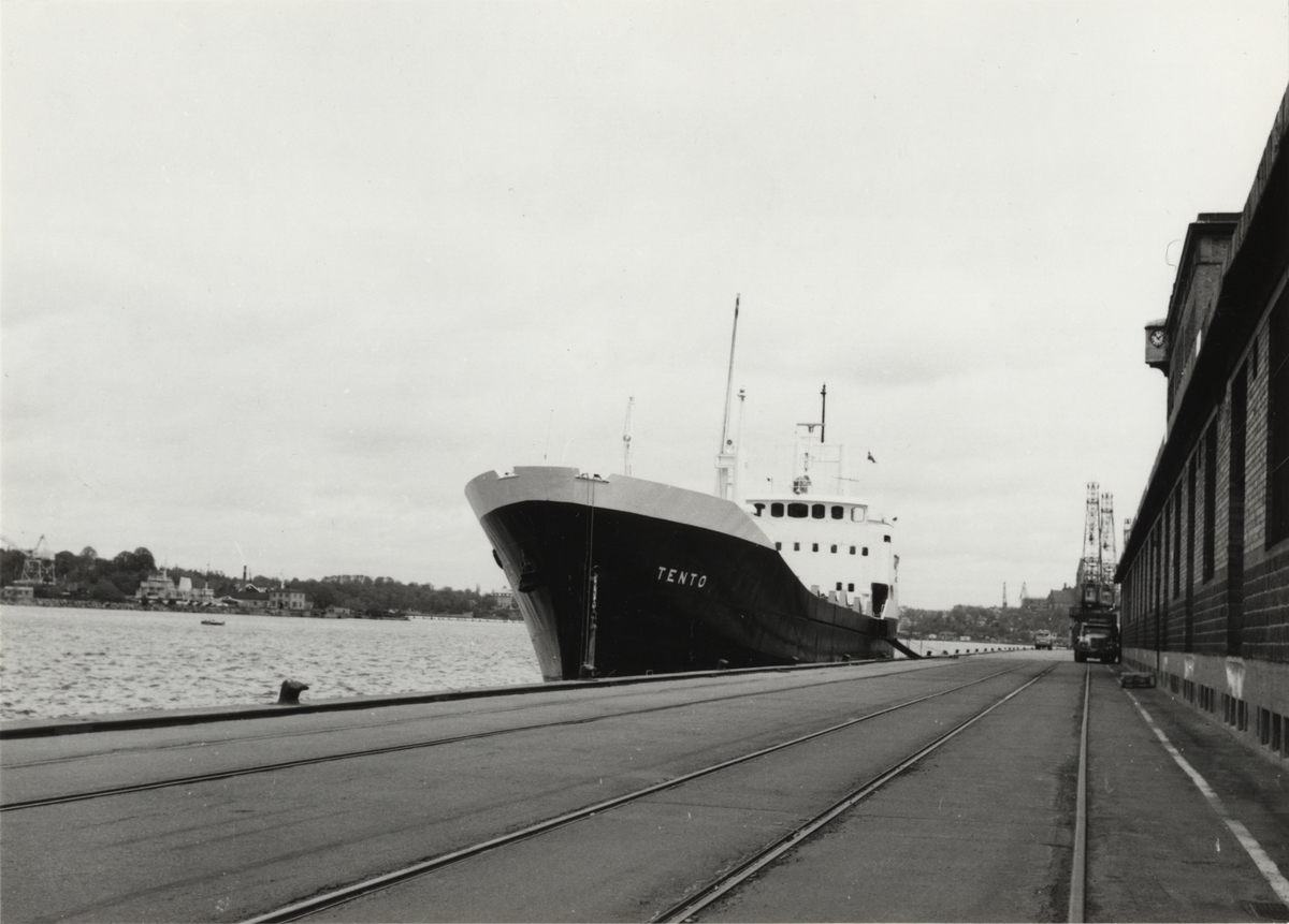 Det tyska lastmotorfartyget TENTO liggande i Stadsgården Stockholm 1970. Fartyget såldes av Ångfartygs AB Tirfing den 24.10.1969.