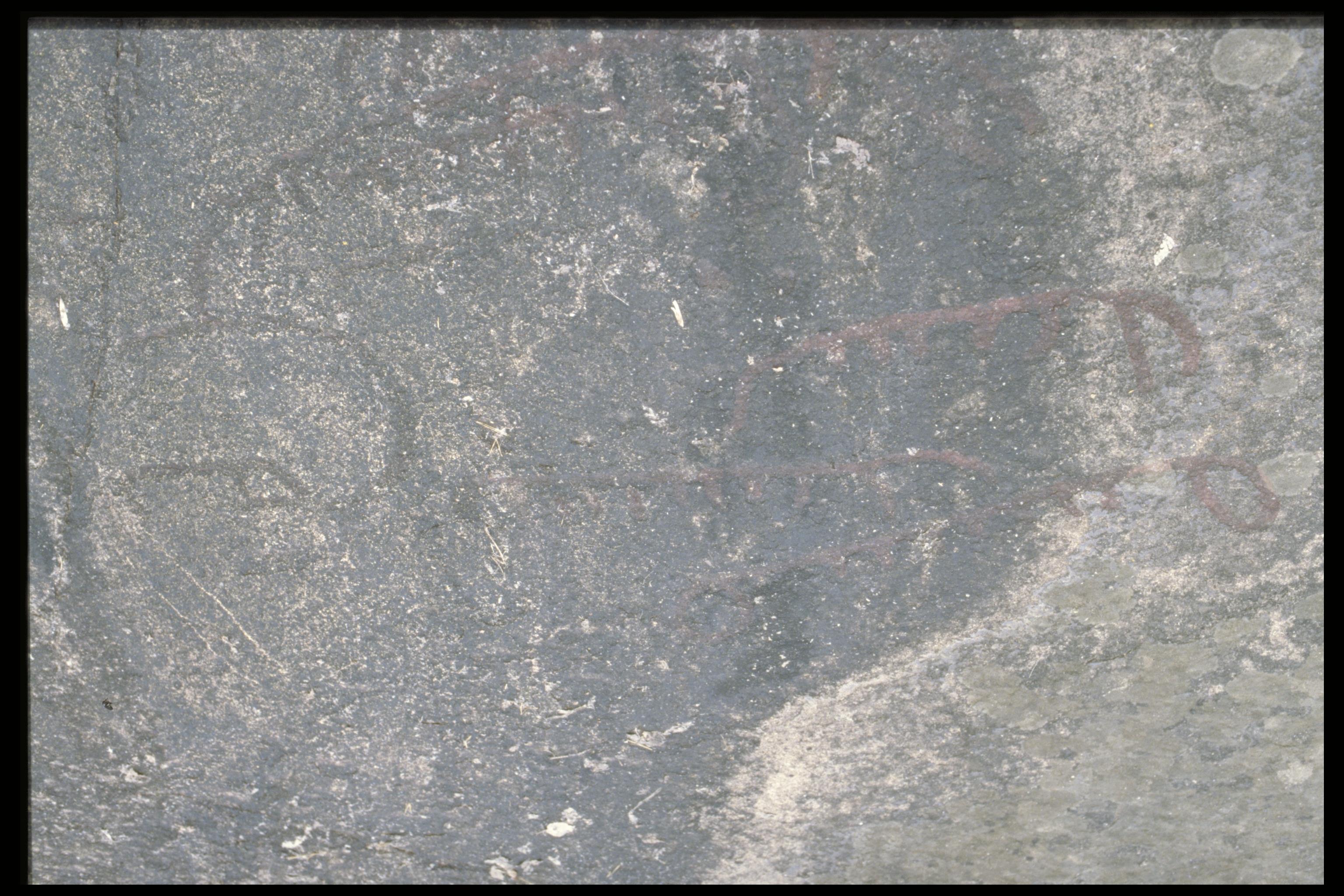Vittrad hällyta med materialförlust och missfärgning. Tossene 73:1.