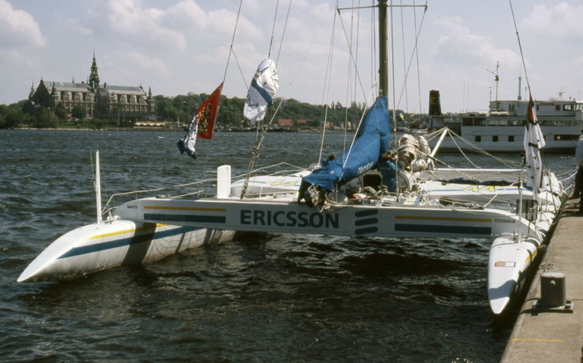 Katamaran sponsrad av Ericsson med Nordiska museet i bakgrunden.