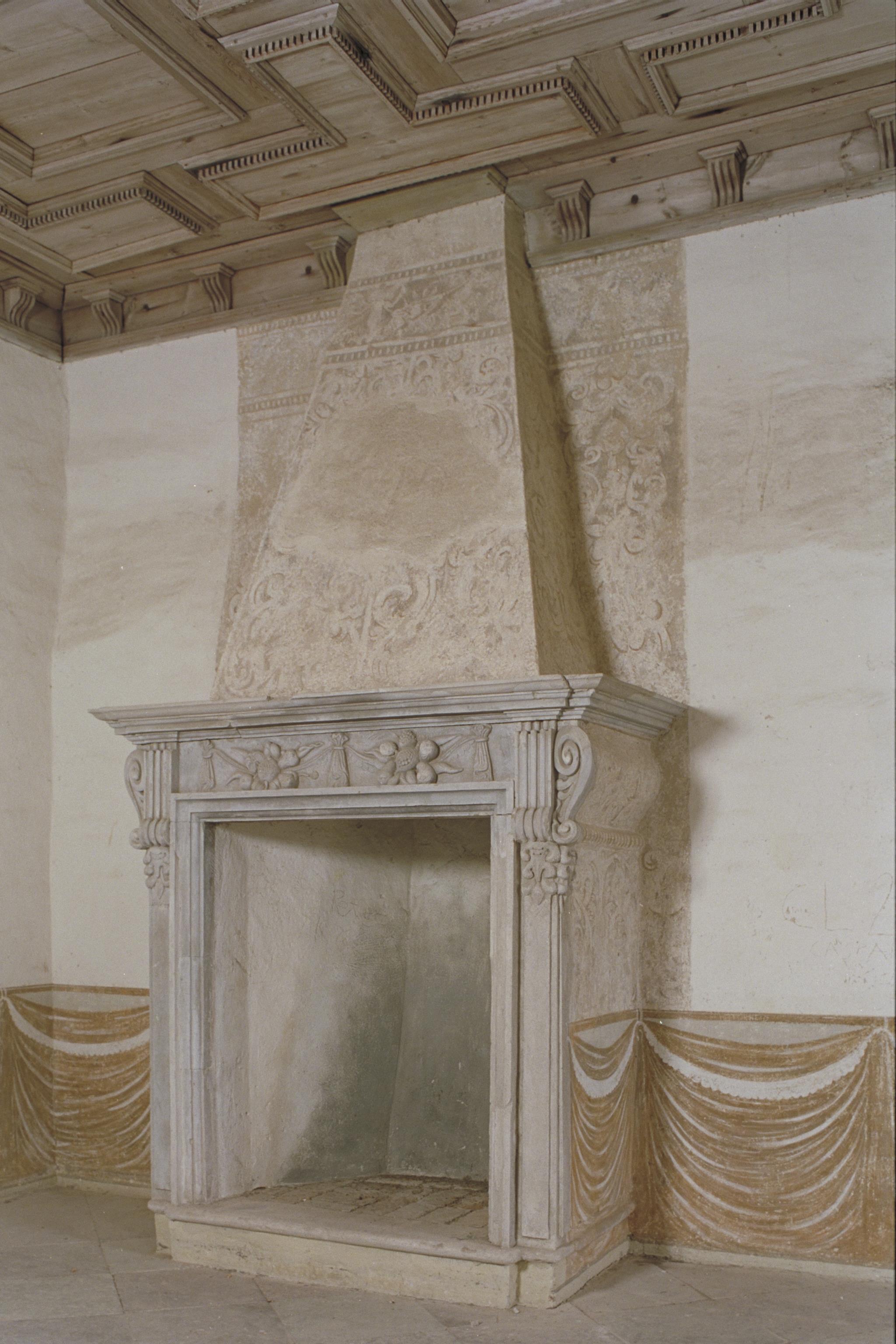 Första våningen, åt sydöst, öppen spis i stora salen.