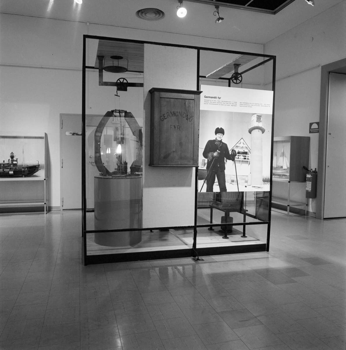 Utställningstext: Germandö fyr Germandö är en stor, flack, barrskogsbevuxen ö i Luleå skärgård, Den gamla segelleden löper efter öns östra sida upp mot Tjuvholmssundet och vidare mot Luleå. Angöringen sker vid Rödkallen där en fyr uppfördes 1851. 30 år senare tillkom fyrbelysning i leden in till Luleå. Dessa ledfyrar var bland de första i Sverige.