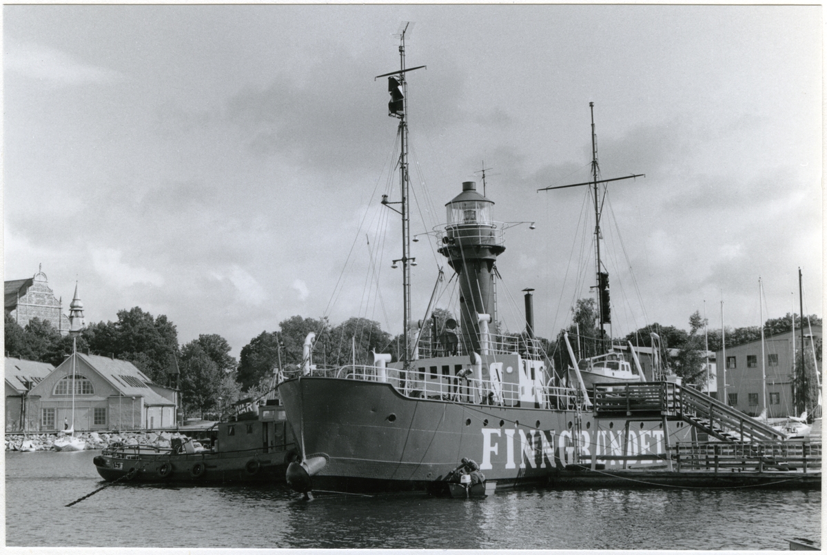 [från fotobeskrivningen:] "FINNGRUNDET flyttas 1980-08-06 från Wasavarvet till museipirar på Galärvarvets område där redan SANT ERIK [sic] ligger."