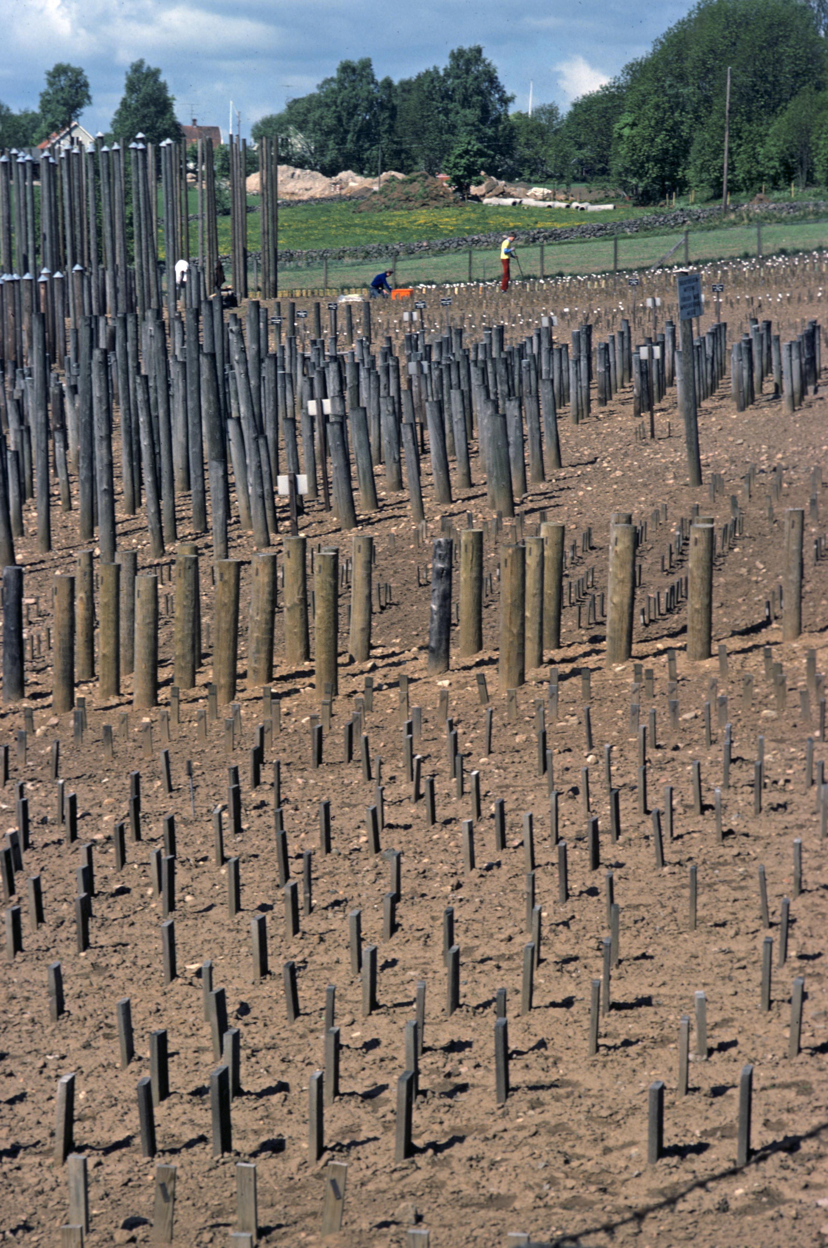 Trädskyddsinsitutets försöksodling. Bilden troligen från mitten av 1970-talet.
