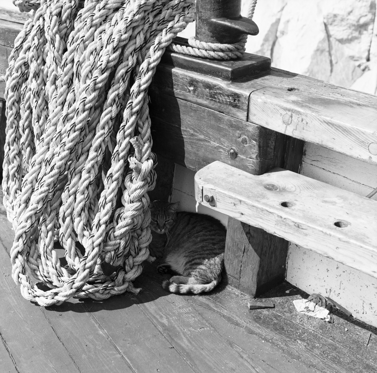 En skeppskatt intill trossen ombord på GUNHILD.