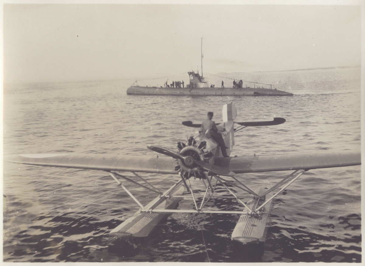 Ett sjöflygplan av typ Heinkel HE 5, i Flygvapnet S 5; i bakgrunden ubåten BÄVERN. Heinkel HE 5 förekom i Flygvapnet i flera varianter (S 5, S 5A, S 5B, S 5C och S 5D) med olika motor- och utrustningsalternativ. Samtliga benämndes allmänt Hansa eller Hansa-Brandenburg p g a sitt släktskap med de maskiner (S 2, S 3 och S 4) Flygvapnet övertagit från Marinens Flygväsende och som konstruerats av tyska Hansa-Brandenburg.