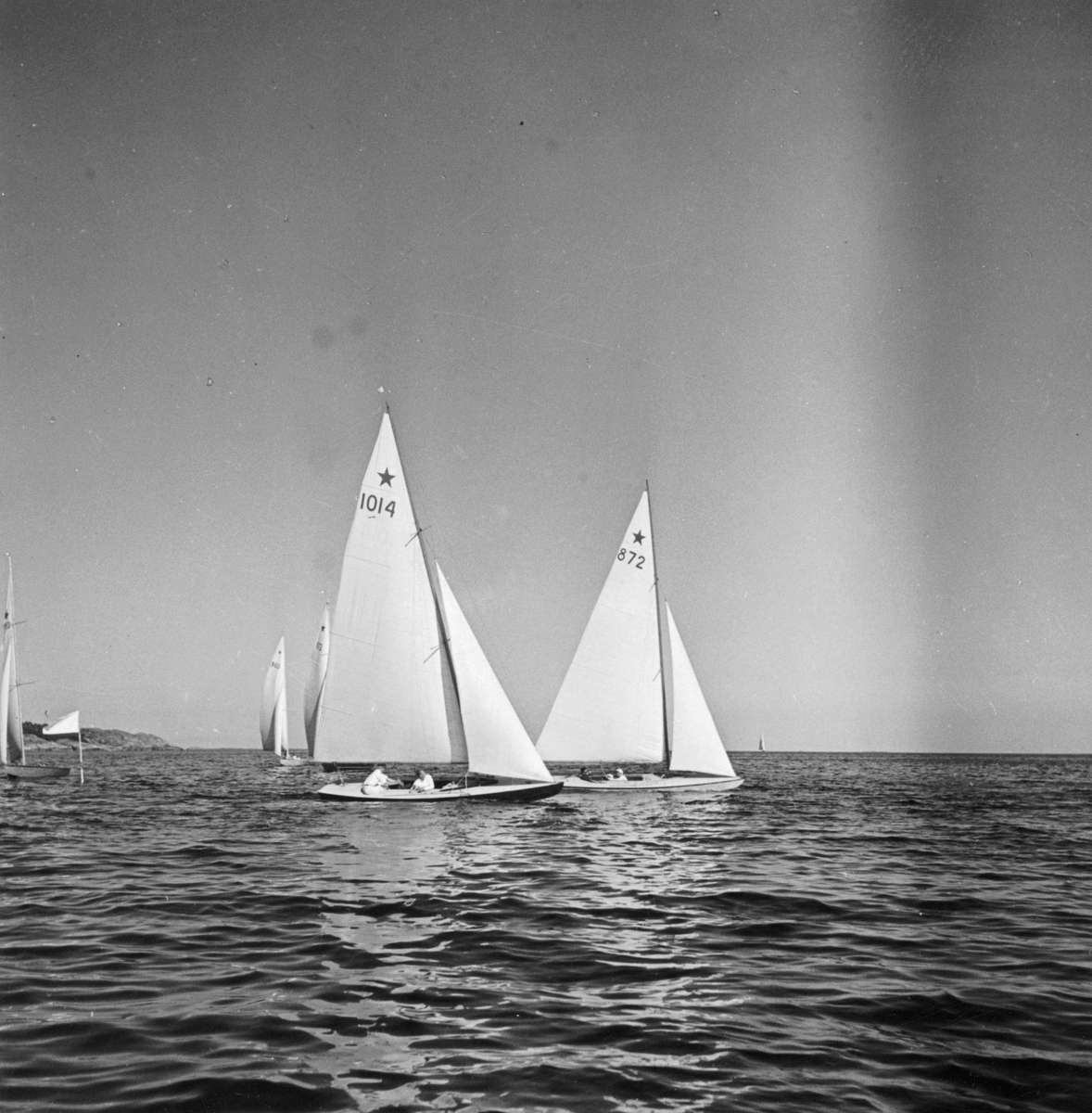 På bilden ses starbåtarna 1014 MOONSHINE och 872 FINIKANT (b. 1932) samt i bakgrunden 860 ASTRA (b. 1931) och 1113 (b. 1935).