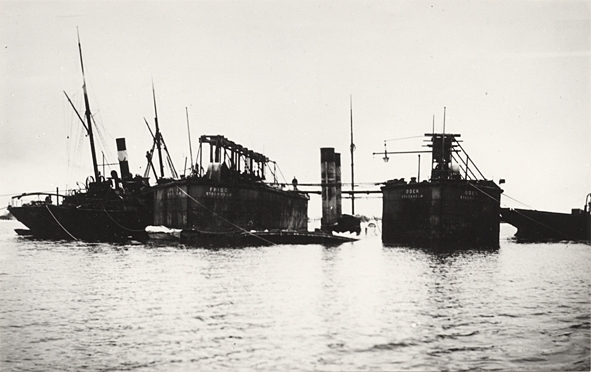 På fotots mitt BORE samt på sidorna pontonerna ODEN och FRIGG.