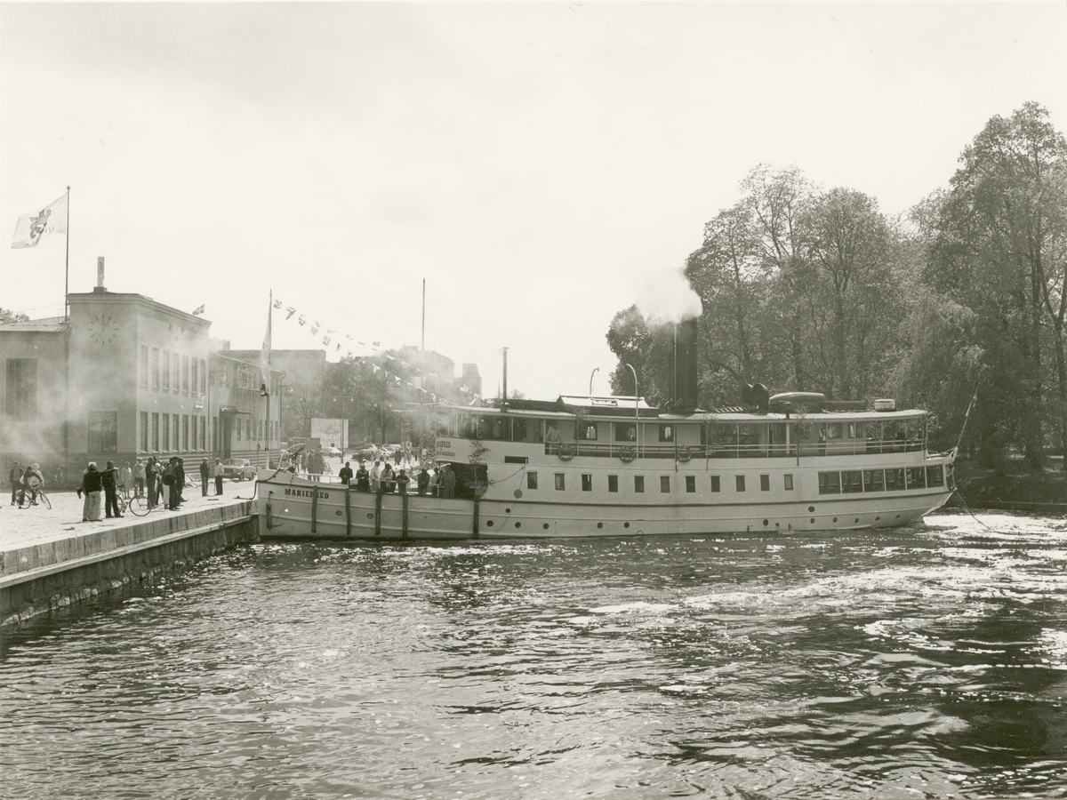 Ångfartyget MARIEFRED på jubileumsresa till Uppsalas 700 årsjubileum den 22 maj år 1986.
