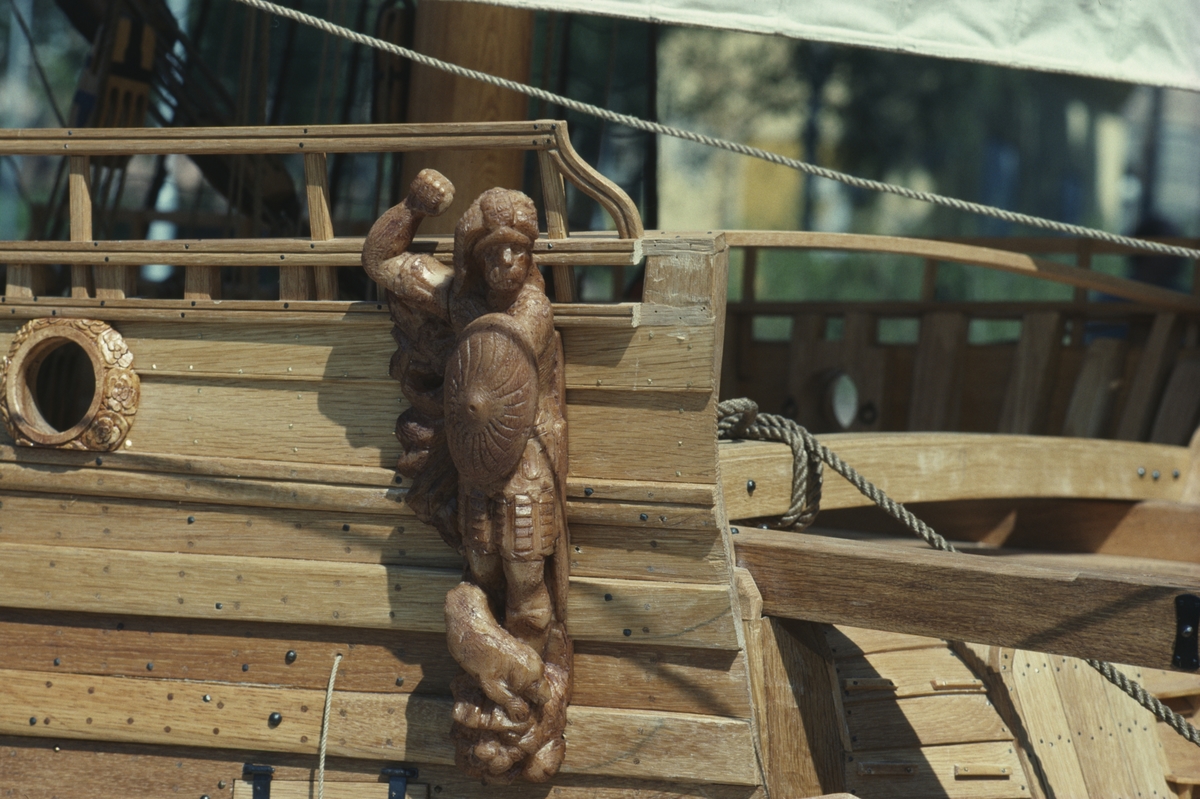 Detalj av vasamodellen i skala 1:10. Modellfigur av romersk krigare.