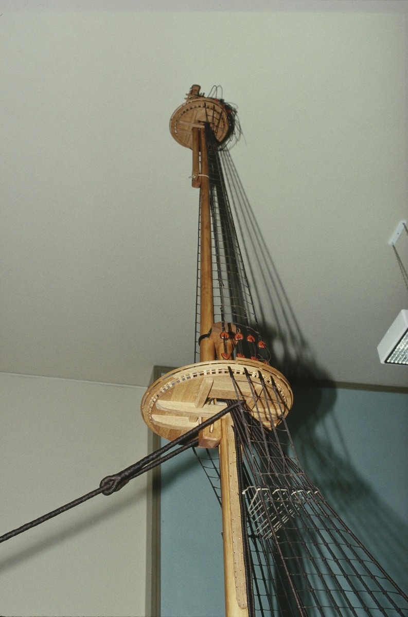 Detalj av vasamodellen i skala 1:10. Mast med märsar.