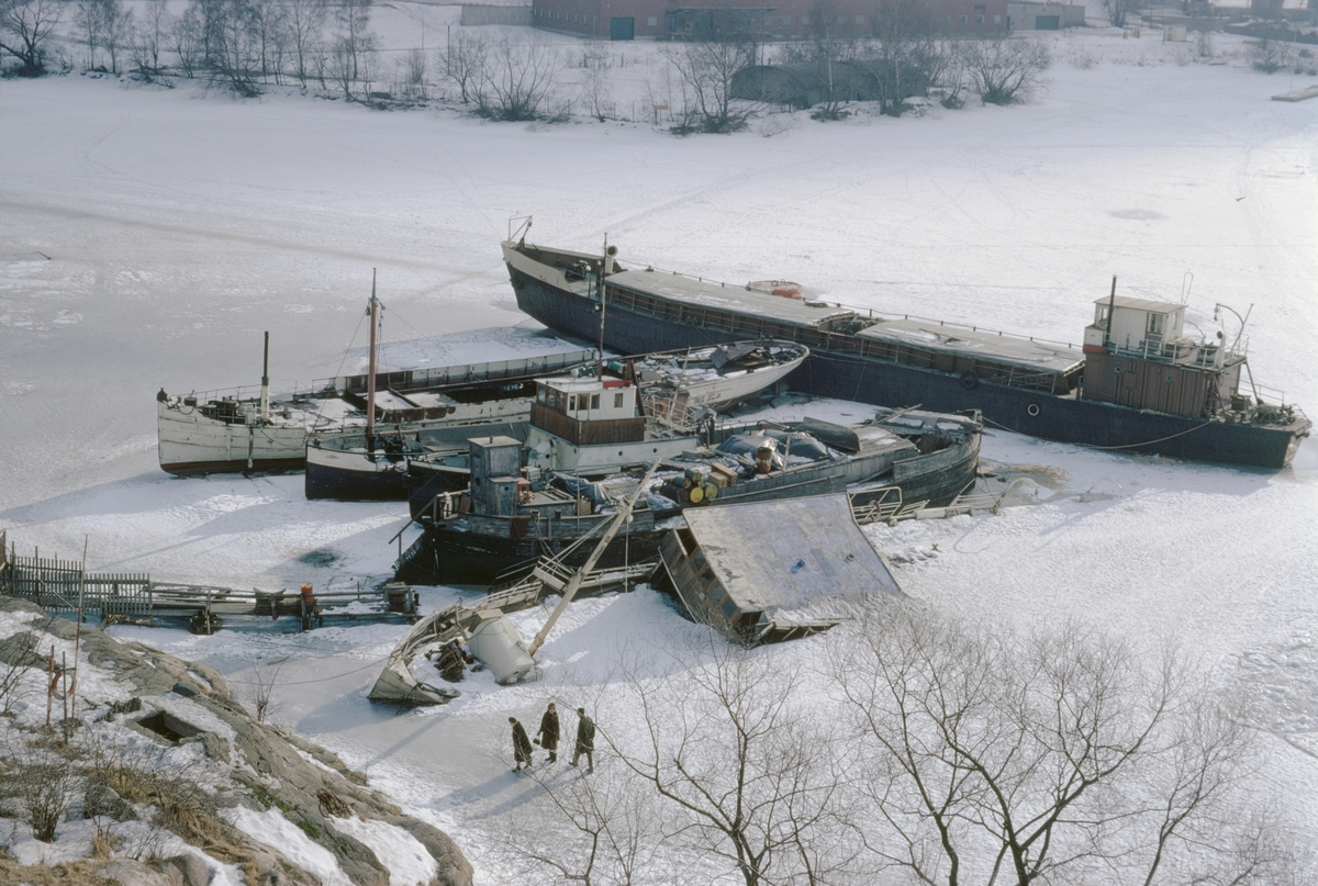 Den havererade MS SUNNAN samt Nick, Shell, Tug och Gruno i Fredhäll.
