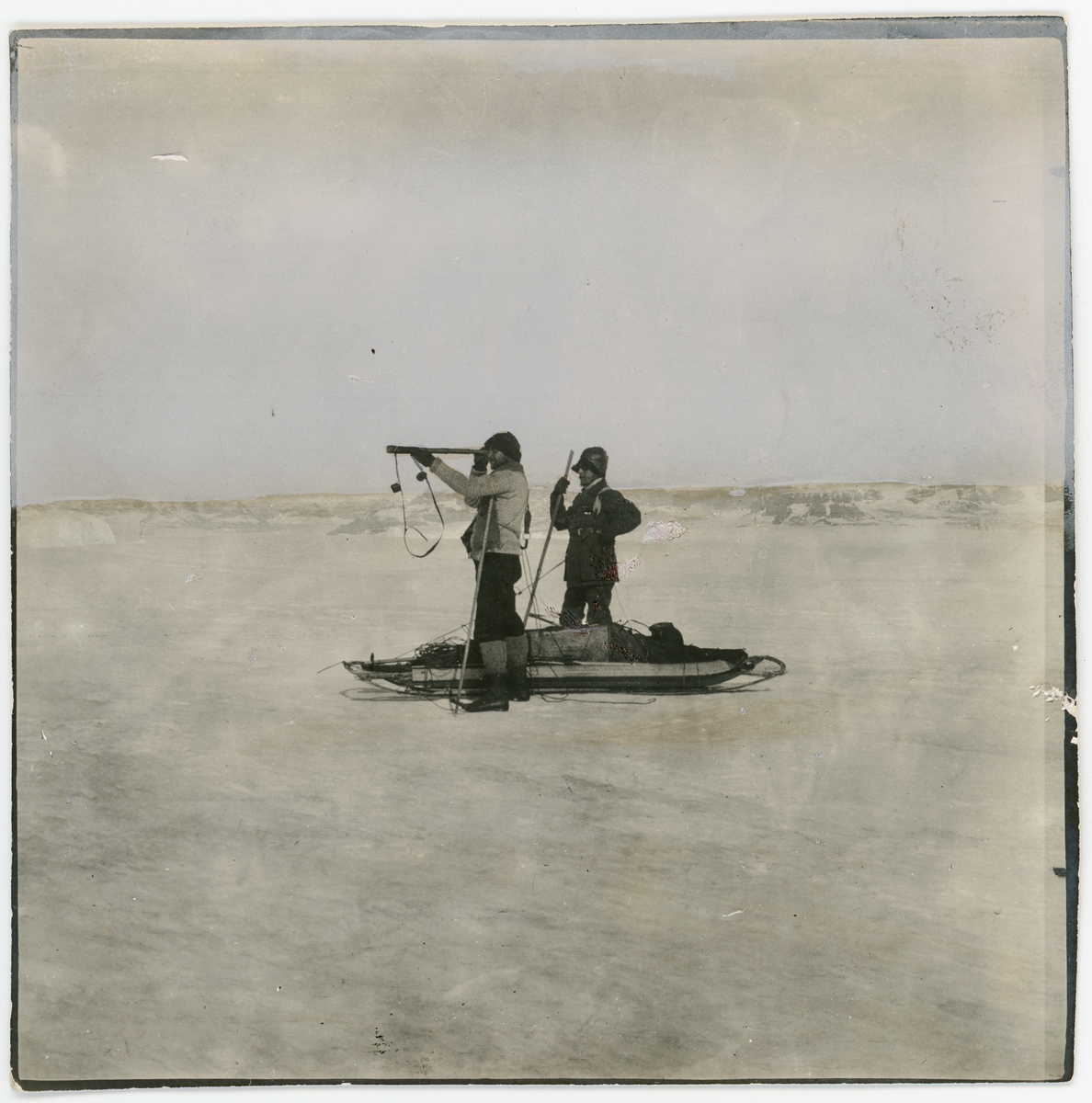 Löjtnanterna Bergendahl och Axel Blom spanar efter Snow Hill, 4 december 1903.