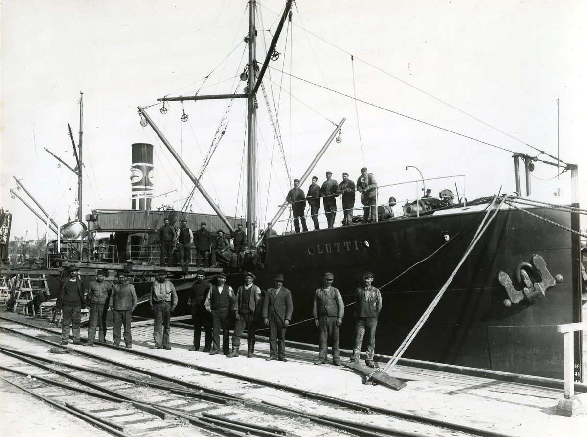 Ångfartyget Lutti av Göteborg, net.ton 616 hkr 650 Ångfartygs AB Heimdal, under kollossning i Wisby hamn.