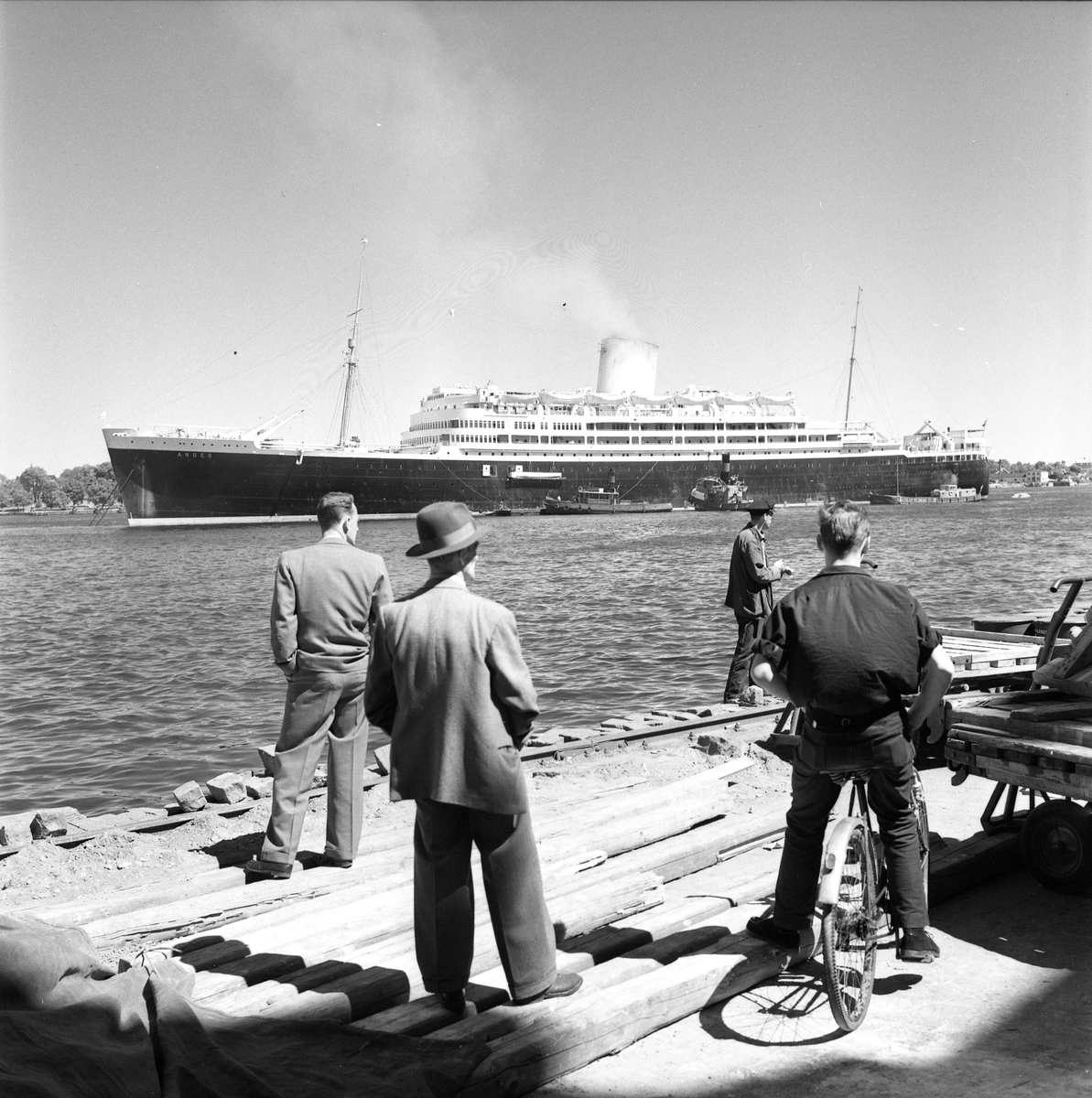 Män vid kaj. I fonden kryssningsfartyget ANDES.