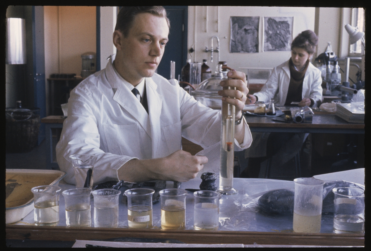 Konservator Bo Lundvall arbetar med täthetsbestämning. Lundvall arbetade på med Vasa under åren 1957-2000