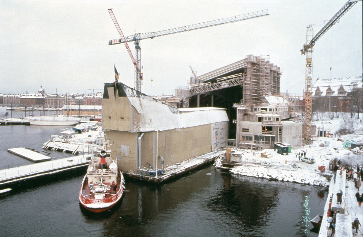 Vasa bogseras in på sin ponton i nya Vasamuseet.