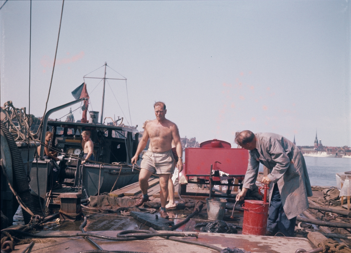 Per Edvin Fälting till vänster och Edward Clason till höger i arbete ombord på dykarflotten.