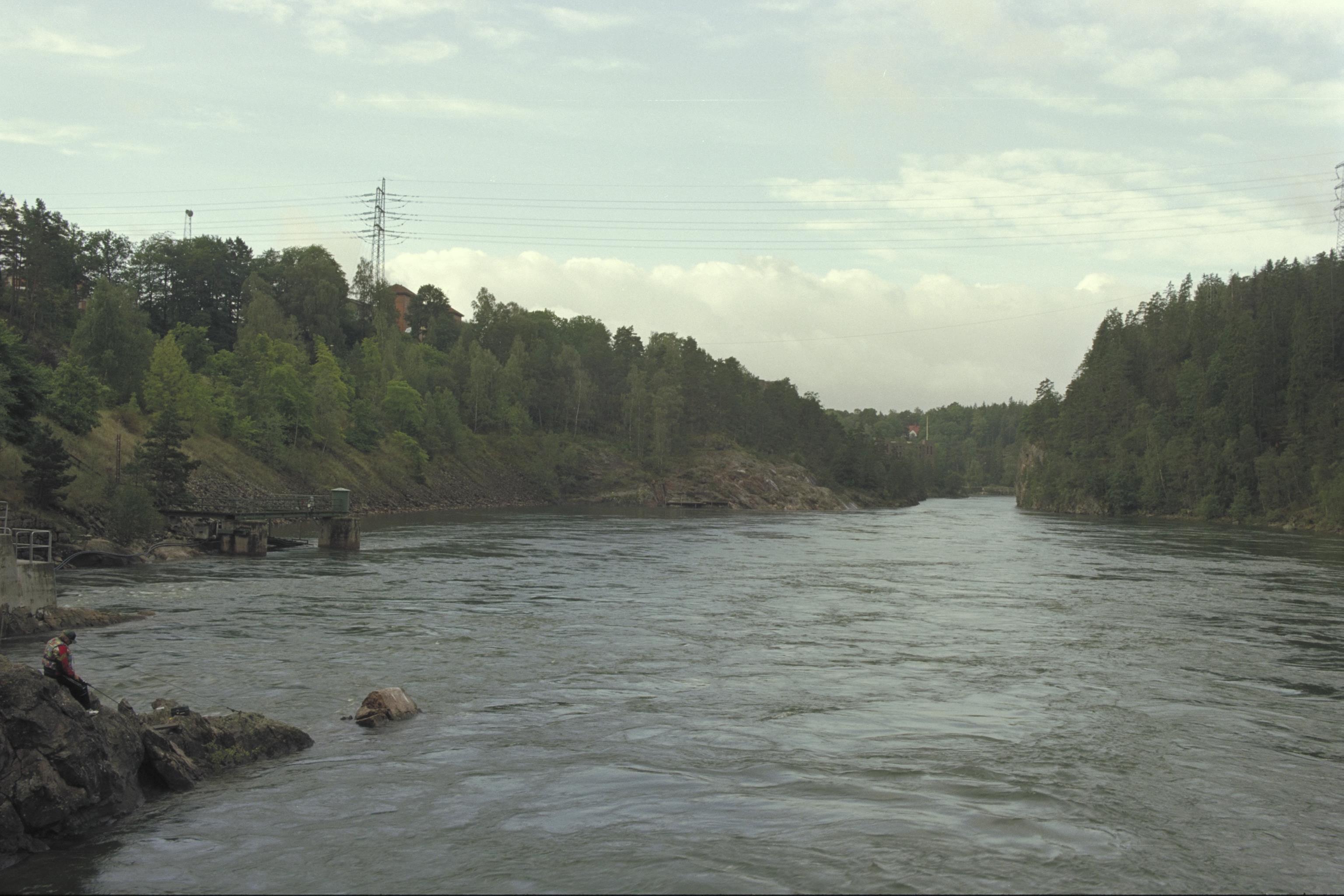 Bild över Håjum varp, tagen från västra banken av Polhems sluss.
