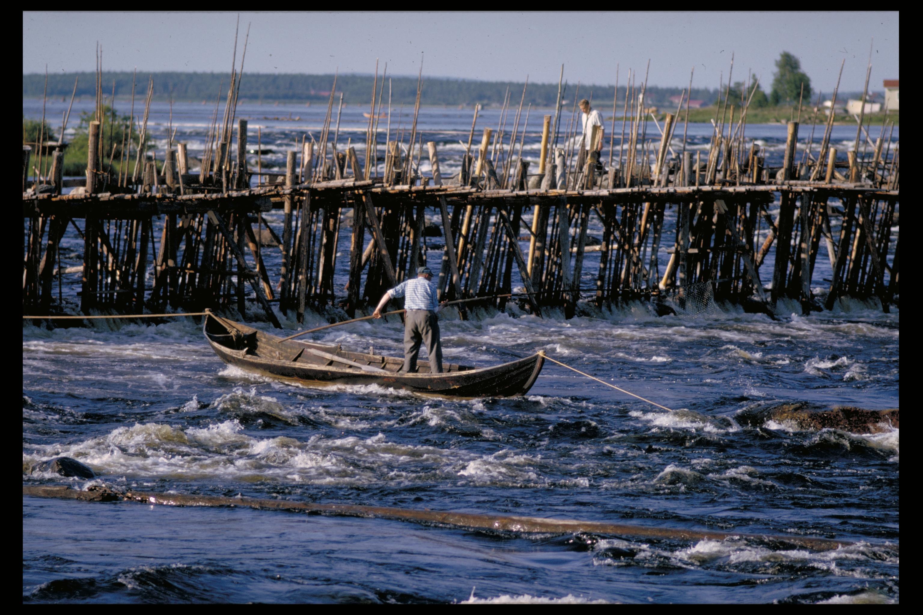 Torne älv, sikfiske vid patan. Bilden troligen från början av 1960-talet.