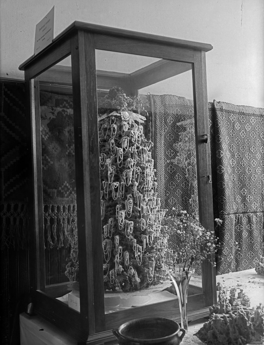 Malmöhus läns hemslöjdsutställning 1931. Skytts, Oxie, Wemmenhögs härad. Gigantisk spättkaka i monter.