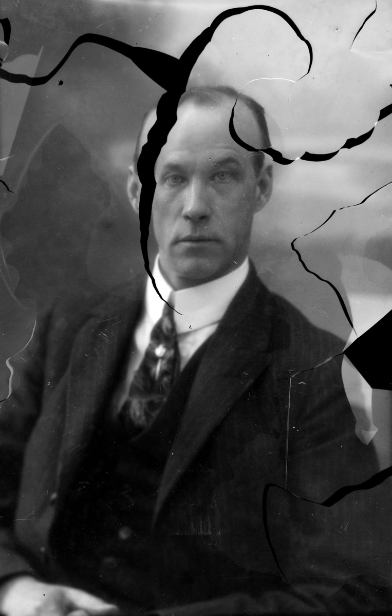 Man, passfoto, emulsionsavlossning, metallutfällning.