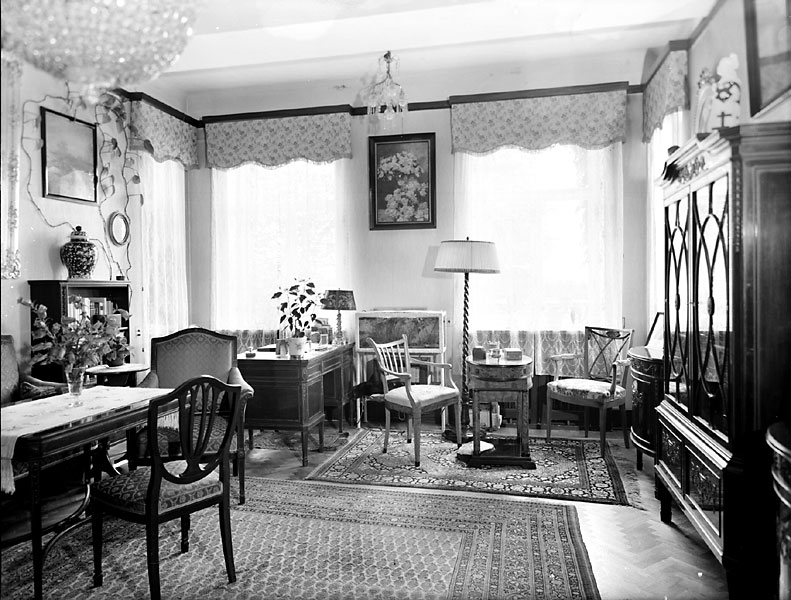 Disponent Otto Mareschs villa på järnvägsgatan, kvarteret Kronan, interiör. Maresch startade trycksvärtefabriken ET Gleitsman.