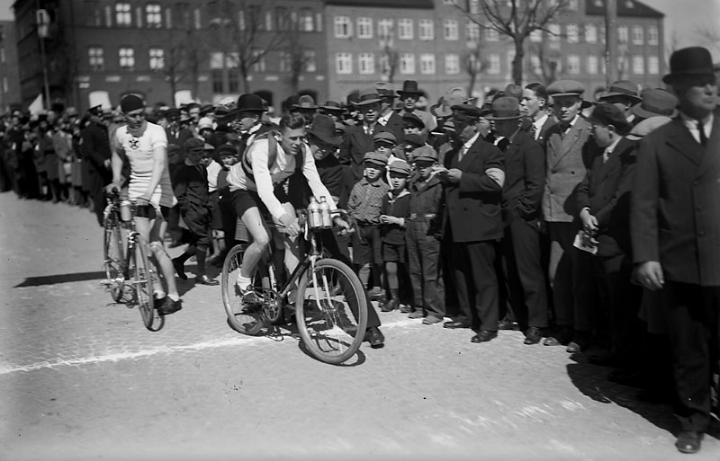 Cykellöpare, stor folkmassa möjligen ”Sverigeloppet”