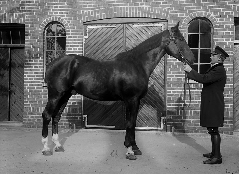 Häst med hästskötare.