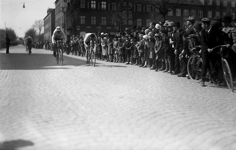 Cykellöpare, stor folkmassa möjligen ”Sverigeloppet”
