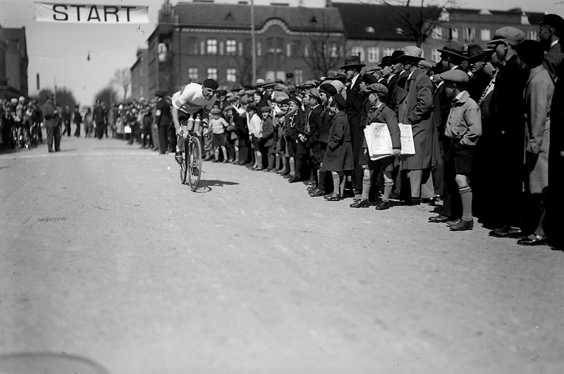Cykellöpare, stor folkmassa möjligen ”Sverigeloppet”