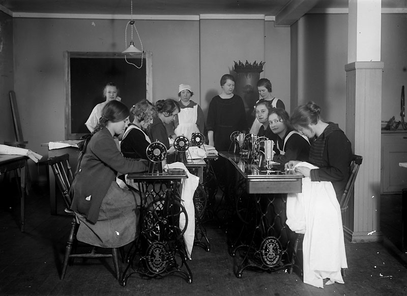 Vassbergskolan Ett antal damer vid Singer symaskiner