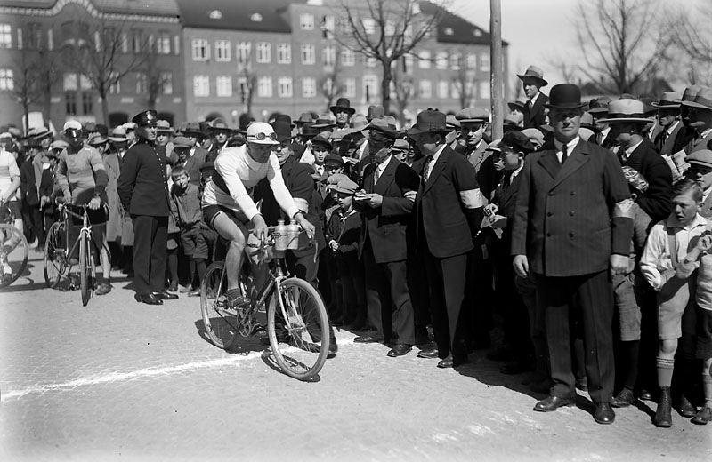Cykellöpare, stor folkmassa möjligen ”Sverigeloppet”